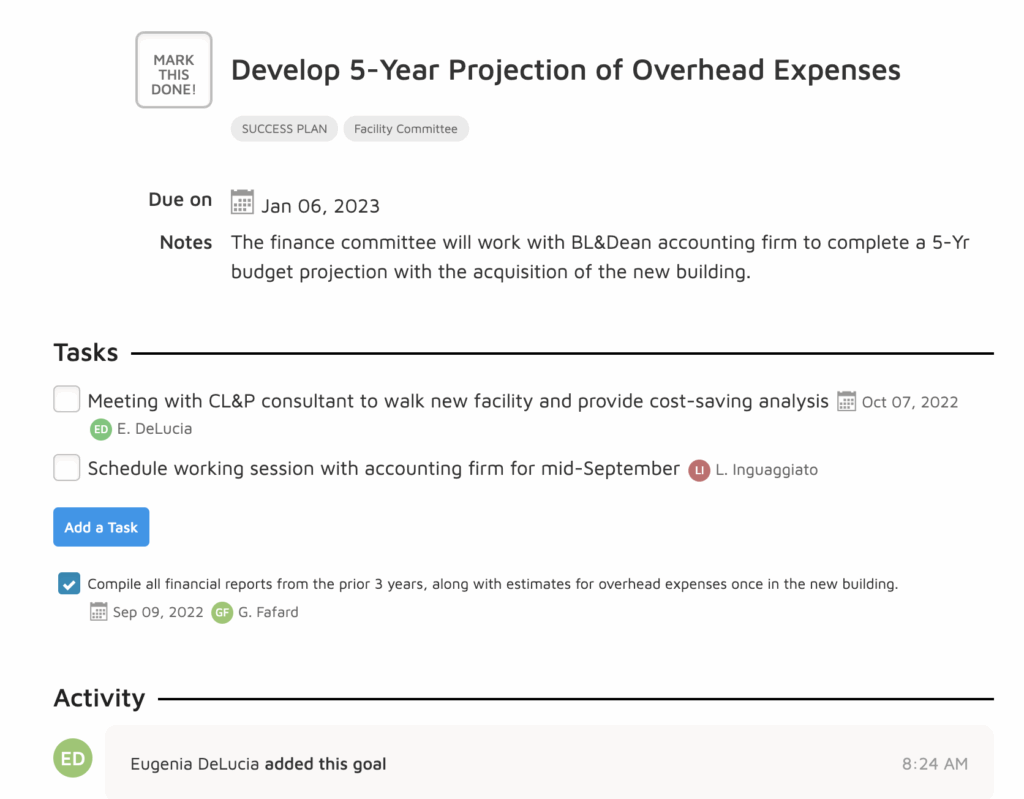 When you know what milestones you need to reach to continue progressing to your overarching goal, you can build your entire year’s meeting calendar and agendas based on that information. This will help you efficiently use the short amount of time you have.